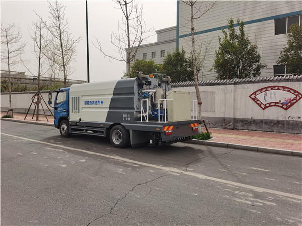 2、手動/自動控制方式均可以實現(xiàn)對每組噴嘴(每組2個)的單獨進行控制,從而實現(xiàn)了大體上調(diào)節(jié)噴灑的寬度。手動噴灑功能可以使瀝青通過手噴管進行噴灑,靈活方便,適用于小范圍及邊角施工狀況。